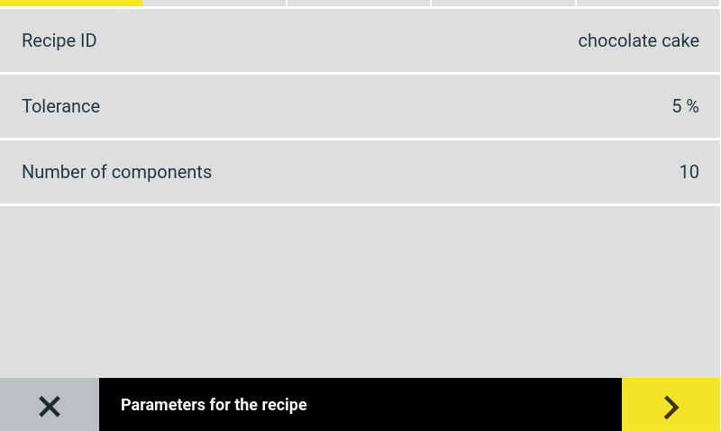 在任务中,可以创建新配方(图2)。每个配方都需要一个在数据库中独一无二的名称,并添加可用于每个组分的公差值(百分比表示),以及配方中含有组分的数量(最多 50 种)。一旦配置了组分的数量,用户就可以开始输入配方的每个组分。一个组分包含一个名称和一个重量,重量可以以mg、g或kg为单位输入(图3)。